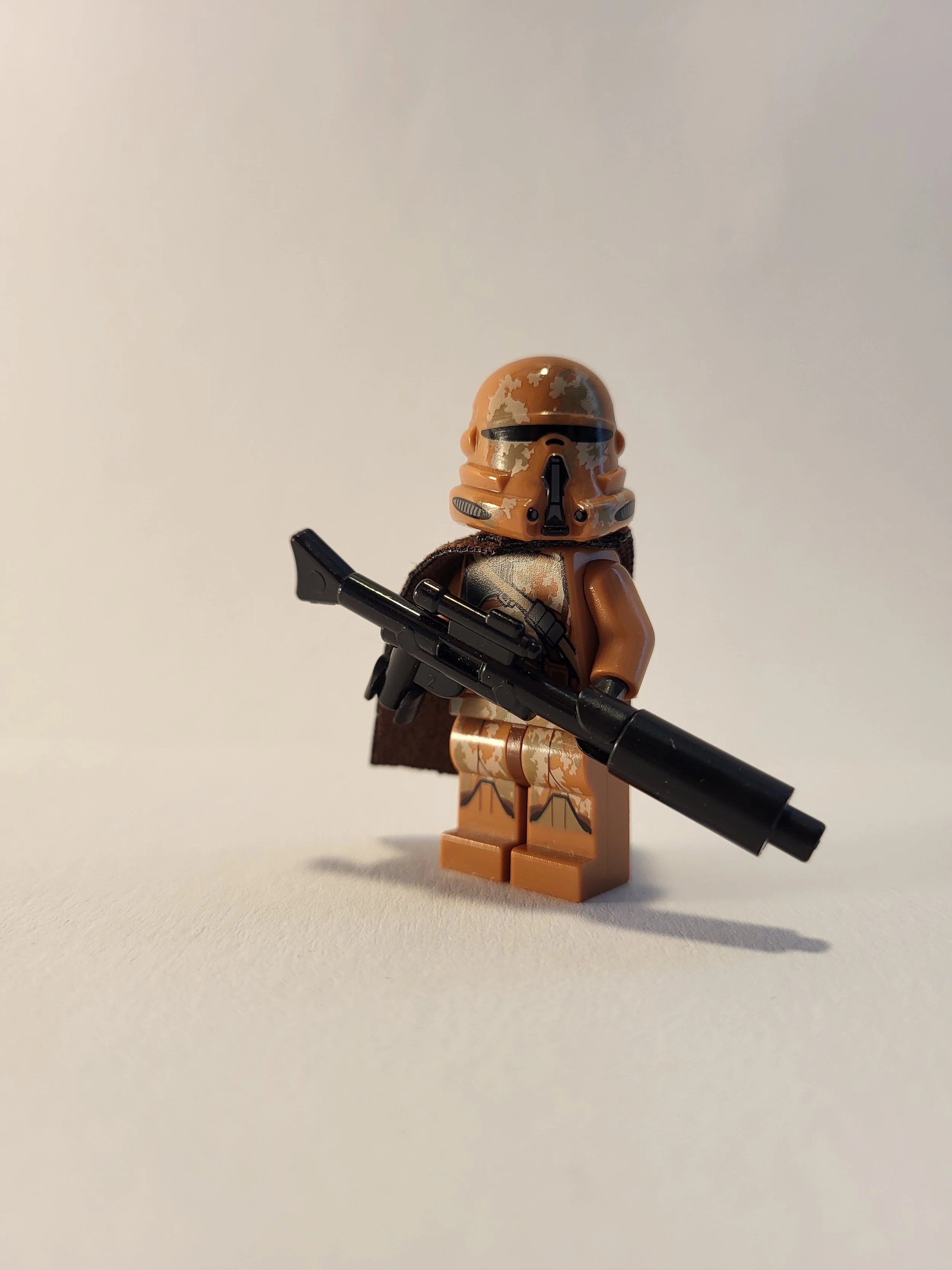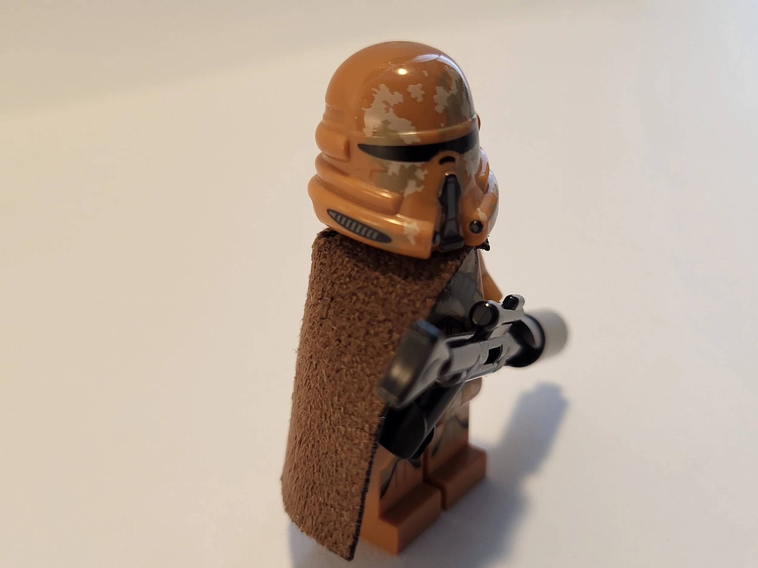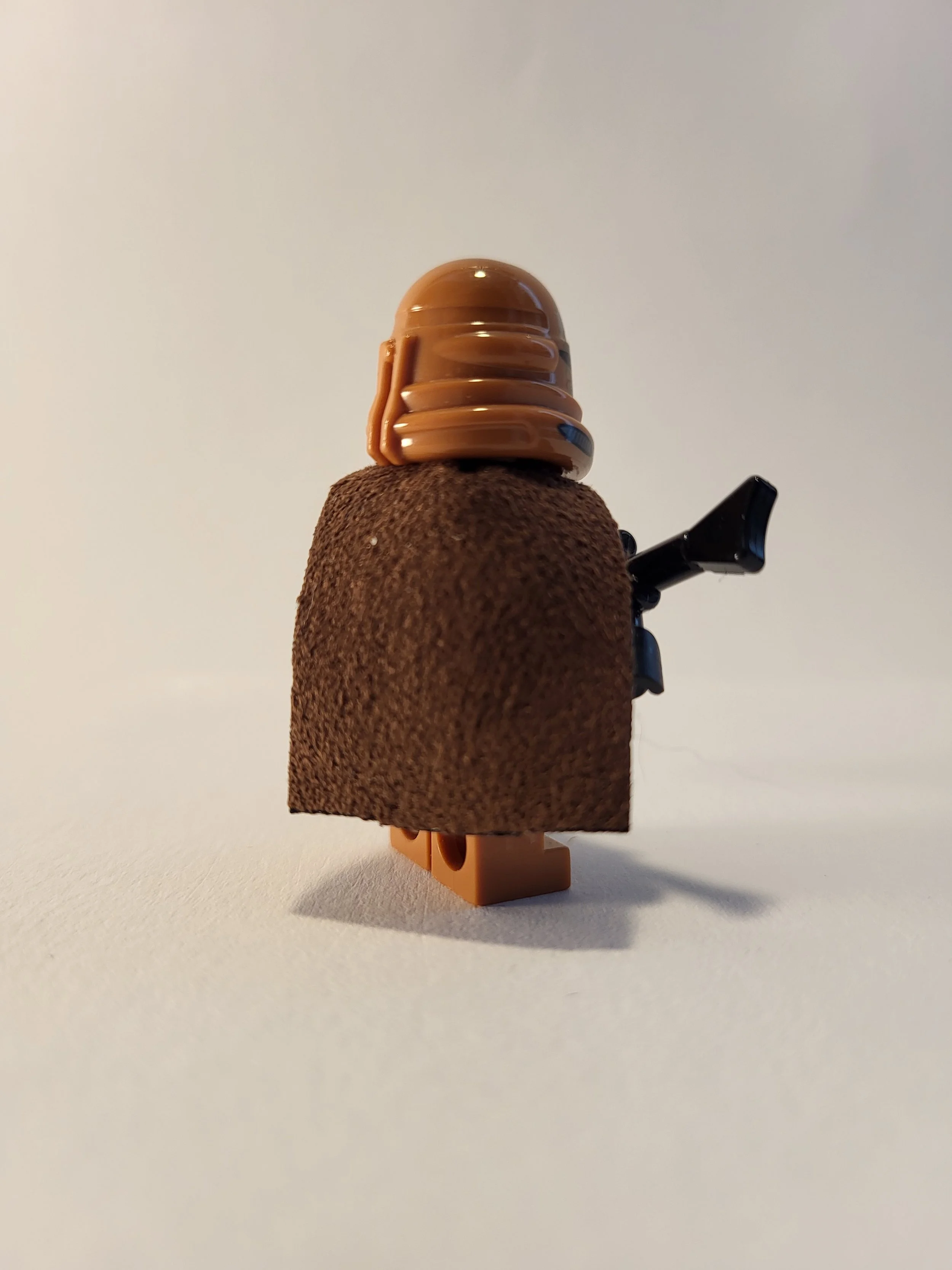 You may have to bend the poncho a bit into shape before putting it on. The color is not 100% acurate to the LEGO color dark tan.